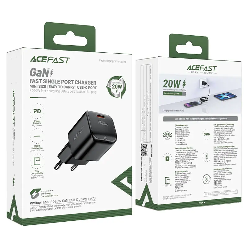 - Product name: ACEFAST A73 mini PD20W GaN wall charger.