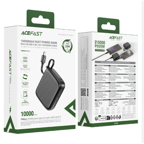 - The ACEFAST M15 PD20W powerbank is a compact yet powerful charging companion designed to keep your devices powered anywhere, anytime. With a 10000mAh capacity and a rated 6000mAh output, it ensures multiple charges for smartphones, tablets, and other gadgets on the go. Equipped with advanced 20W fast charging, this power bank supports the latest charging protocols, including PPS, PD3.0, PD2.0, QC4+, QC3.0, QC2.0, AFC, FCP, and SCP, making it suitable for a wide range of devices.