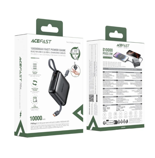 - The ACEFAST M23 PowerBank is a versatile and reliable charging solution, designed to keep your devices powered throughout the day. With a high-capacity 10,000mAh battery, it provides multiple charges for smartphones, tablets, and other gadgets, making it perfect for travel, work, or daily use. Its 22.5W fast charging support with PD (Power Delivery) and QC (Quick Charge) protocols ensures your devices charge quickly and efficiently, saving you time.