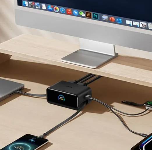 - A 1.3-inch LCD display conveniently shows real-time power and temperature information, giving you full visibility of your charging status. Plus, the automatic retractable USB-C cables make it easy to maintain a neat, tangle-free workspace.