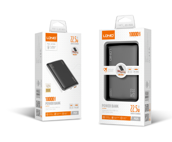Furthermore, the LDNIOPQ25 is built with long-lasting performance in mind, featuring a lithium-ion electric core and a smart Automax chip for optimized charging. This ensures your devices get the right amount of power without risking damage. In conclusion, the LDNIO PQ25 power bank not only delivers high output at 22.5W, but it also combines fast charging, durability, and a sleek form factor, making it a reliable choice for users who prioritize both style and functionality.