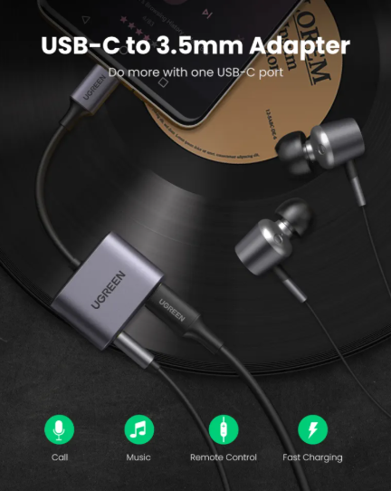 - The UGREEN CM231 (60164) 2-in-1 USB C to 3.5mm Adapter is the perfect solution for modern smartphones and tablets that no longer come with a 3.5mm headphone jack. With its innovative multiport design, this adapter lets you enjoy music through your wired earphones while charging your device at the same time.