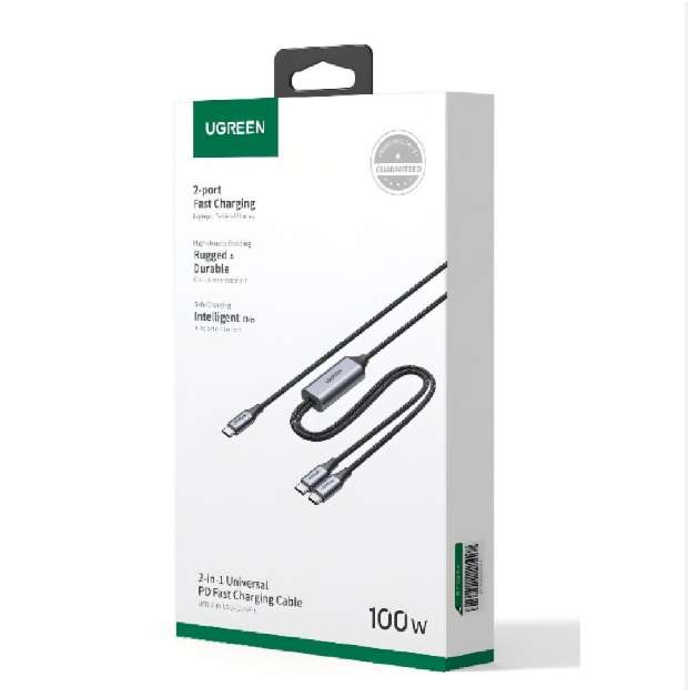 - The UGREEN US561 2-in-1 Universal 100W PD Type-C Fast Charging Cable (1.5m) is the perfect charging solution for those who need both speed and durability. Designed with PD3.0 and QC3.0 technology, this cable supports up to 100W fast charging, allowing you to charge your devices in record time. For example, the latest iPhone 15 can reach 60% battery in just 30 minutes, making it an essential accessory for busy users who cannot wait around for slow charging.